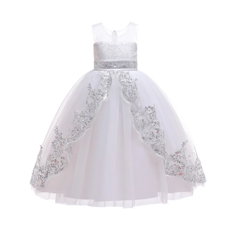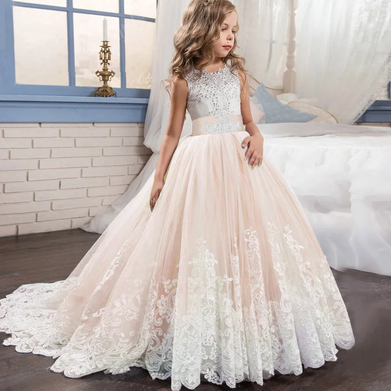 Детские платья для девочек, свадебное платье, элегантный длинный Кружевной Костюм принцессы с вышивкой для девочек-подростков 4, 6, 8, 10, 14 лет