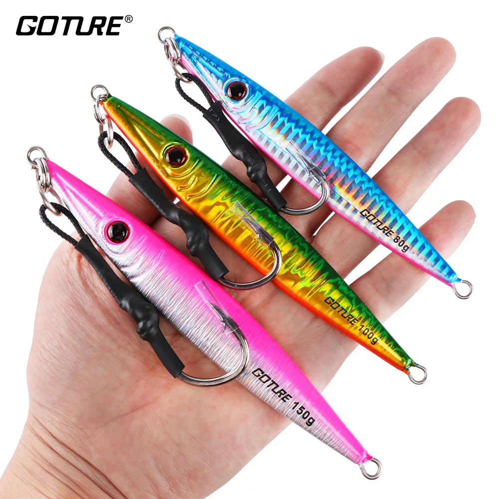 Металлическая рыболовная приманка Goture, воблер с вертикальным свинцовым джиг оснатка приманки, 80100150 г с вспомогательным крючком для морской рыбалки