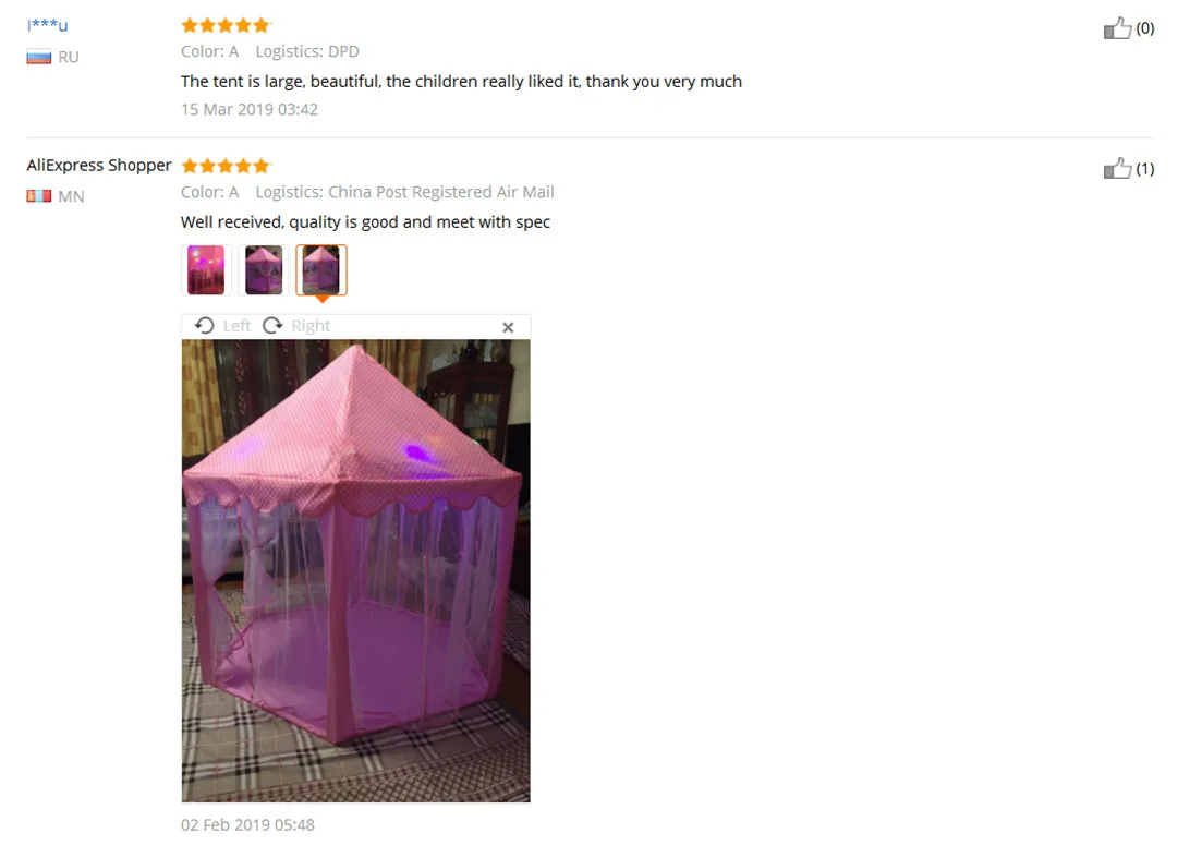 Очень хороший подарок для ребенка. Палатка пришла за три недели, в полном комплекте. Ребенок очень рад. Огромное спасибо продавцу. Так держать