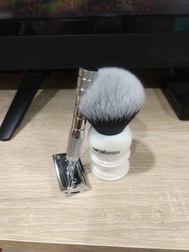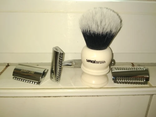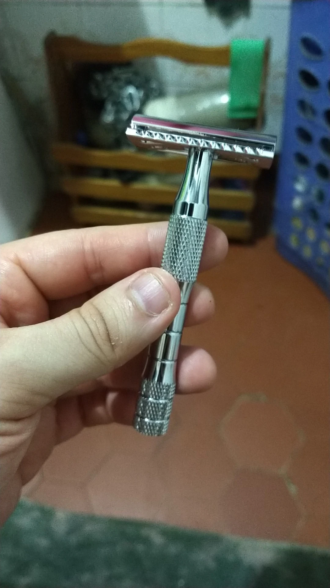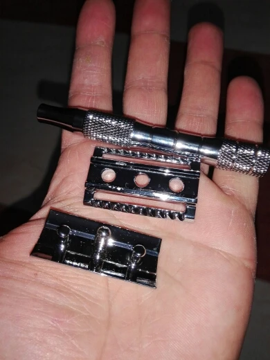 получил бритвенный станок, сразу отмечу его высокое качество. Увесистый, уверенно лежит в руке, сразу становится понятно, что держишь не дешёвый ширпотреб, вроде пластикового жилетта за 300 рублей. Резьба ровно нарезана, изнутри не оцинкована латунь (жёлтого цвета) не магнитится, люфта лезвия нет, сидит как влитое. выступает лезвие миллиметра на 2. оцинкованна очень качественно, никаких намеков на скол или истирание оцинковки нет, я уверен, и не будет. за качество однозначно 5. от немецких станков Мюле не отличить, если бы не надпись)) теперь что касаемо бритья, по комфорту оно чуть приятнее Мюле за несколько тысяч рублей. Средней агрессии, однодневную щитину бреет на сухое даже без выдергивания.волос. пока проиестил лезвия спутник. Далее обязательно дополню отзыв, когда подвернутся другие лезвия. однозначно советую к покупке, 15 долларов достойная цена для такого станка.