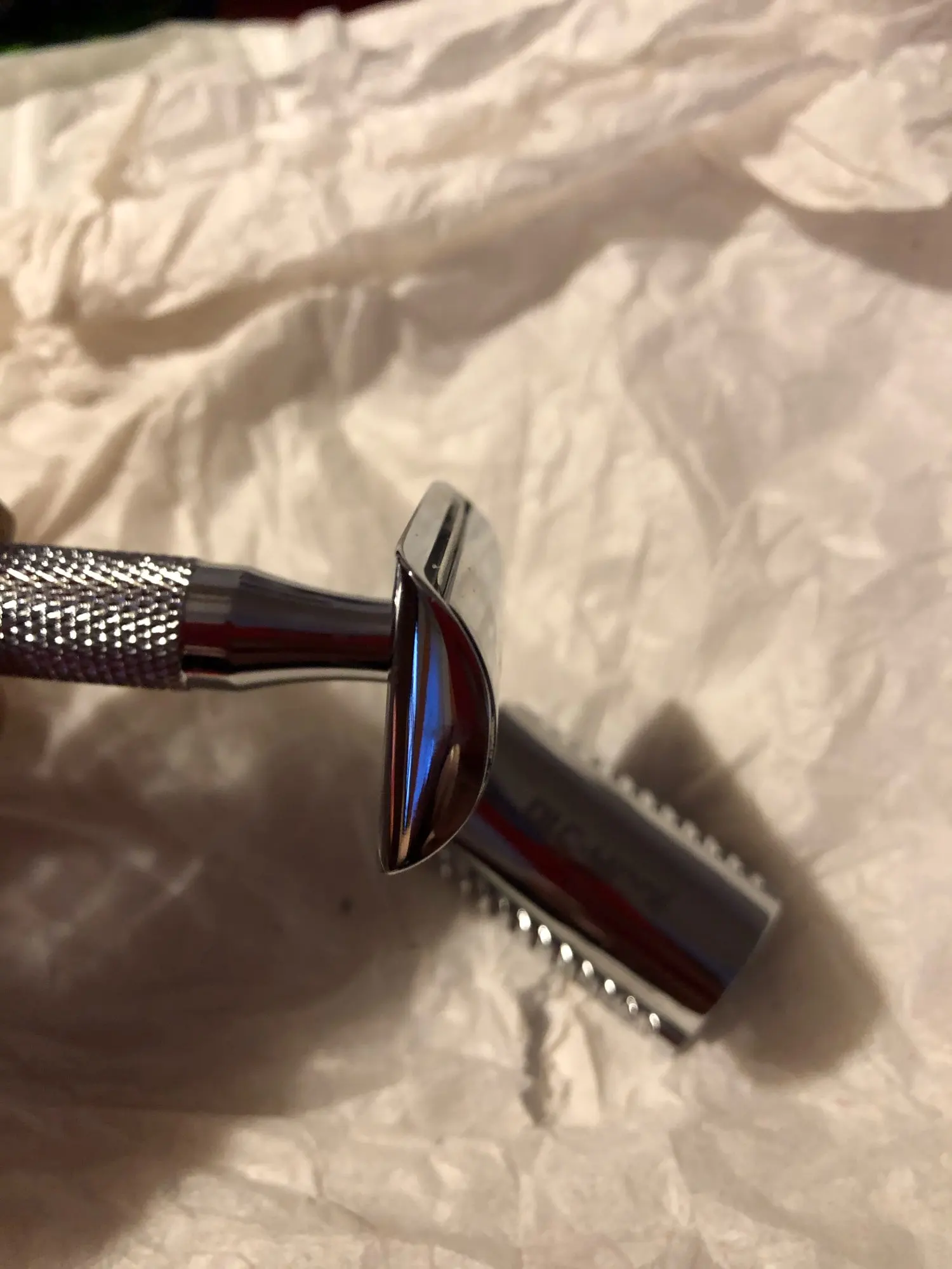 Бритва красивая бреет мягко, но мне попался экземпляр с плохо проточенной резьбой по этому родная ручка закручивалась с усилием а другие ручки из нержавеющей стали закручивались до середины. пришлось самому прогонять резьбу. К отправке и доставке претензий нет.