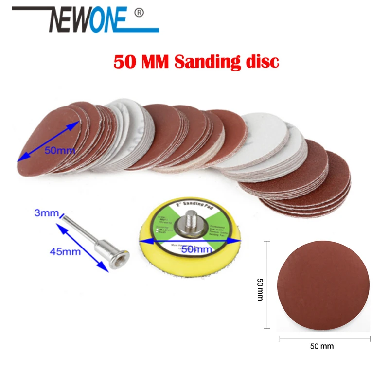 Диск наждачный Mayitr, 60 шт., 2 дюйма, 50 мм, зернистость 10024060080010002000 + шлифовальная тарелка с петлей 50 мм, хвостовик 45x3 мм