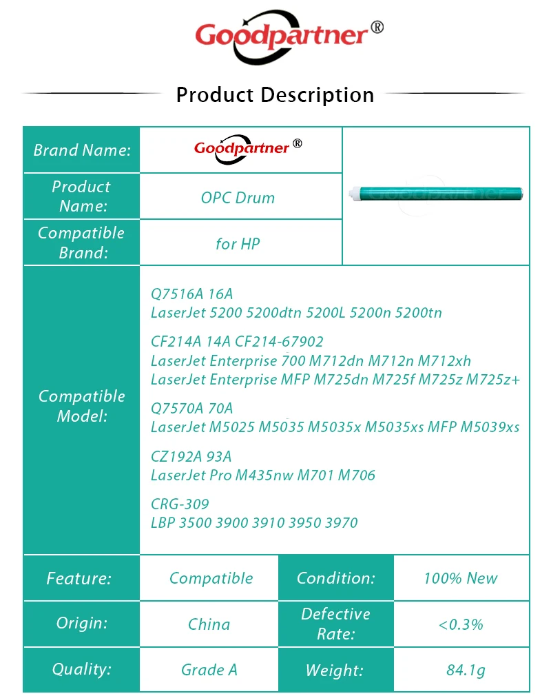 Номер моделиQ7516A CF214A Q7570A CZ192A M5039 CRG-309 LBP 3500 3900 3910 3950 3970