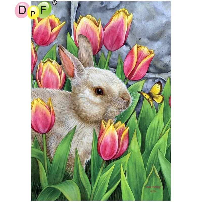 DPF DIY цветы кролик 5D Алмазная мозаика квадратная алмазная живопись вышивка крестиком домашний декор Алмазная Вышивка ремесла настенная живопись