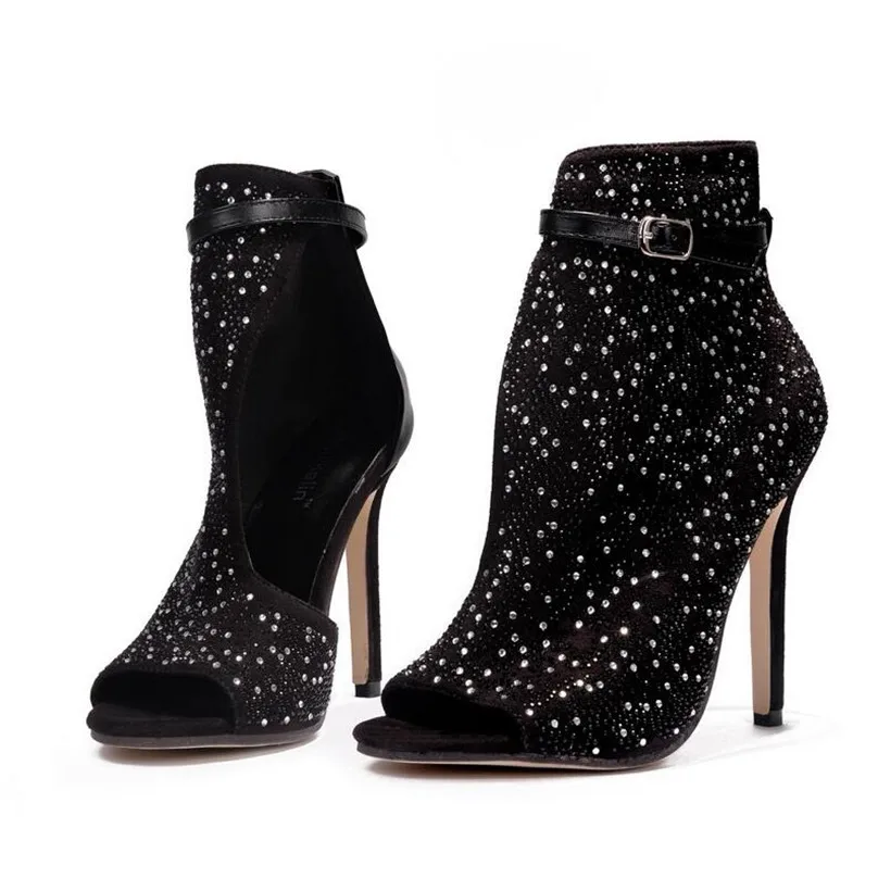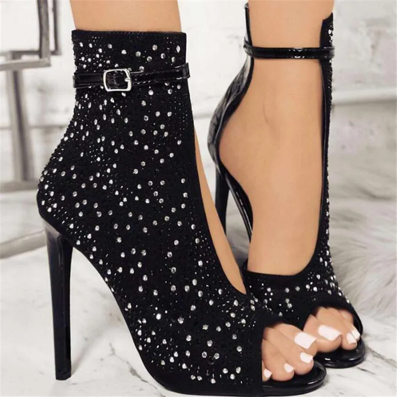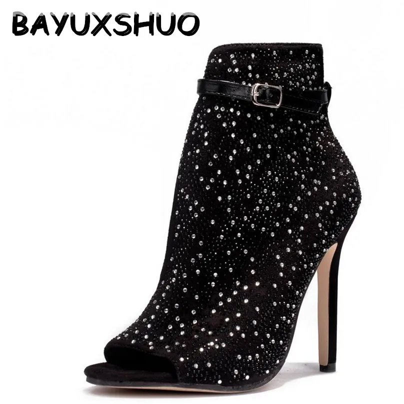 Женские сандалии-гладиаторы BAYUXSHUO, на высоком каблуке, со стразами, с открытым носком, с ремешком и пряжкой, для вечеринок