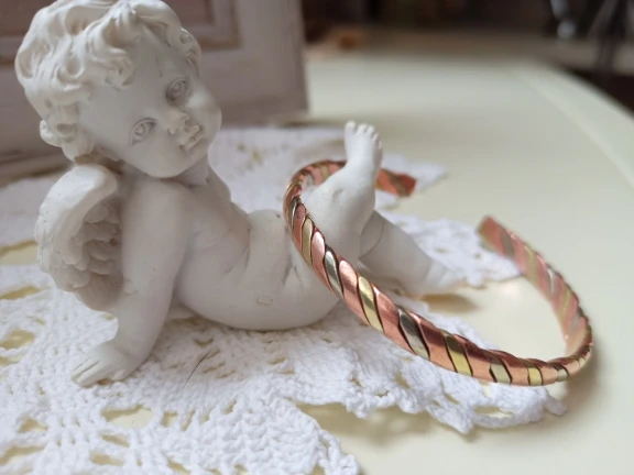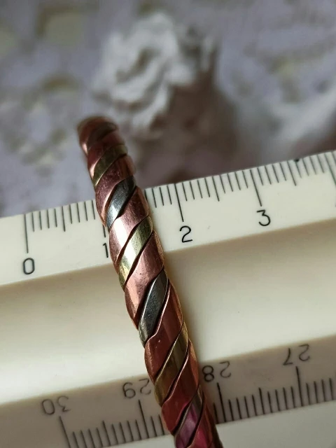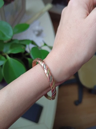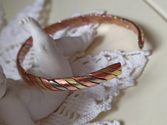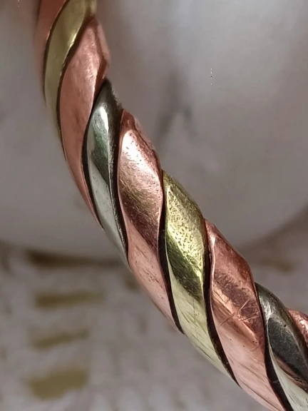 Браслет очень красивый! Выполнен из 3-х разных металлов (видно на срезе), т.е. это не покрытие. Изначально чернил кожу, но после чистки стало всё в порядке. Отправка и доставка быстрые (11 дней в Московскую область). Рекомендую продавца и товар!