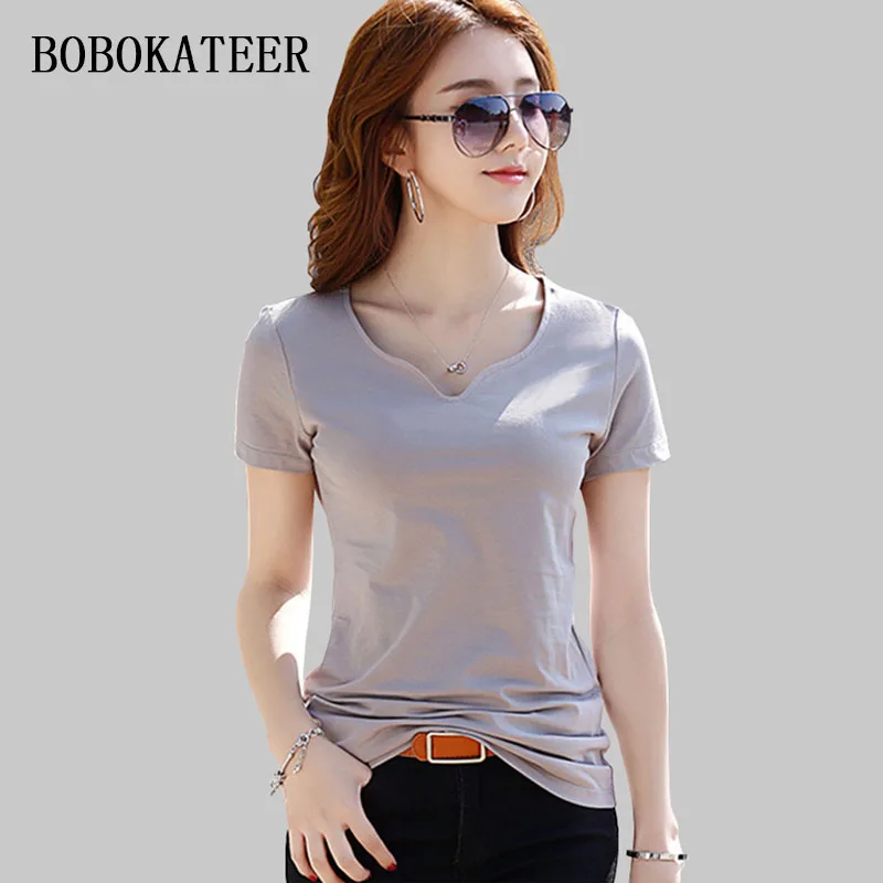 BOBOKATEER летняя футболка женская ropa mujer verano 2021 Топы с коротким рукавом Хлопок размера плюс женская одежда