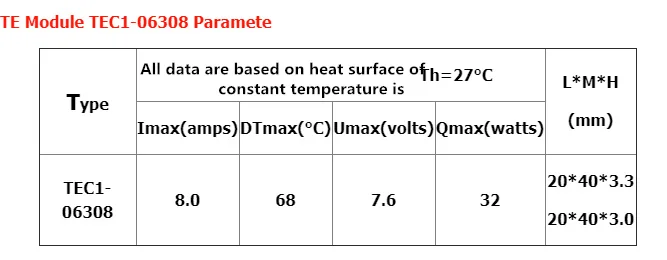 ПолупроводникТермоэлектрический охладительTEC1-06308 TEC1-06310 20*40 ммКрая Медицинский косметологическое оборудованиеОборудование для салонов красотыХолодильная пластина