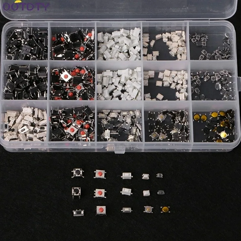 750 шт., 15 значений, Тактильный кнопочный переключатель, микро переключатель для MP3 MP4, ЖК-монитор, автомобильный пульт дистанционного управления, мгновенный ассортимент, комплект