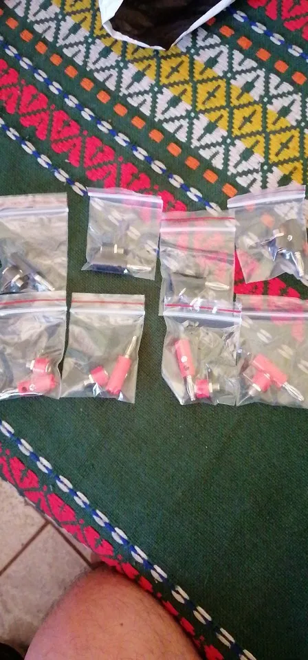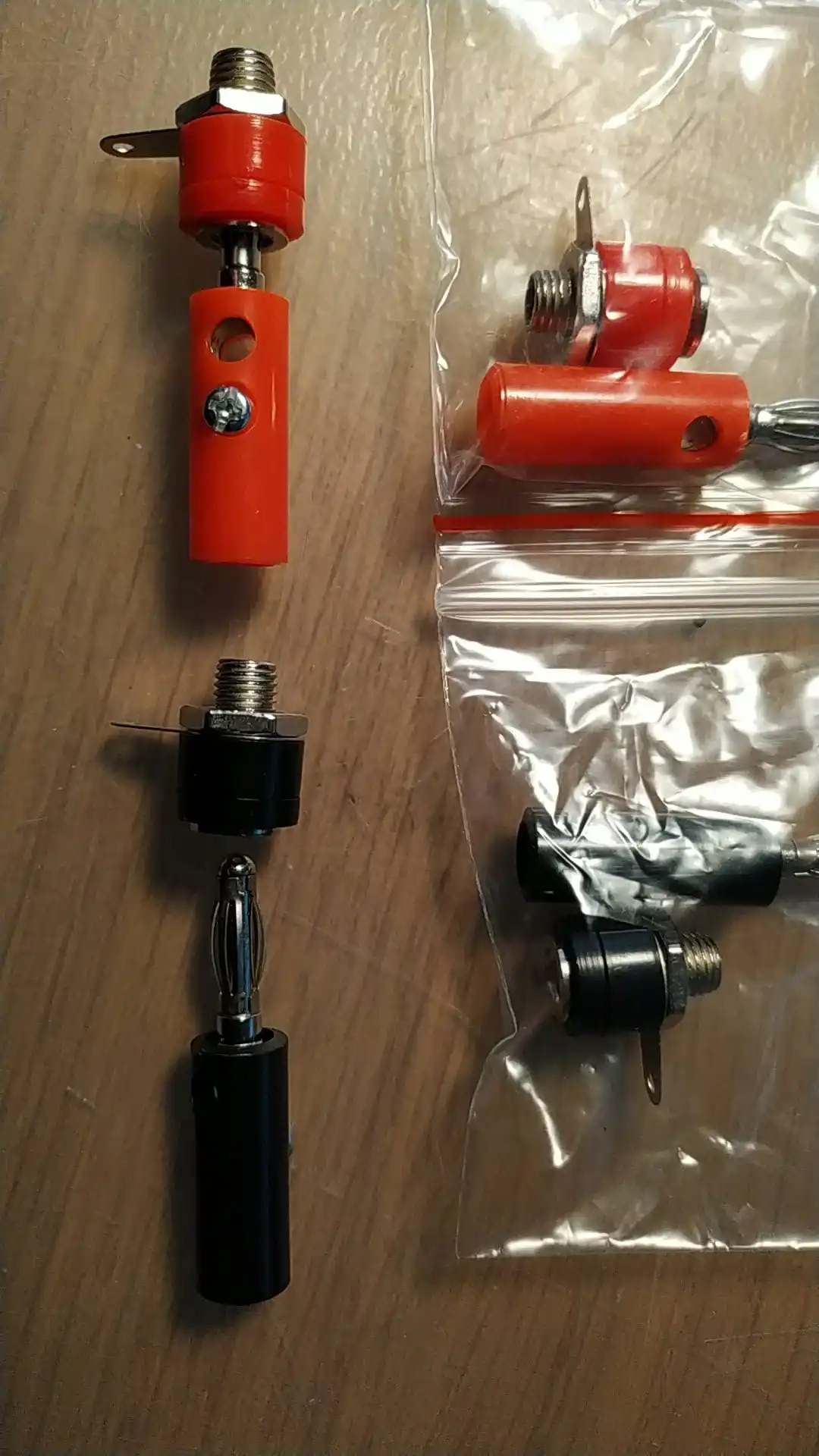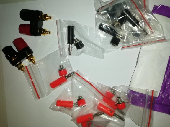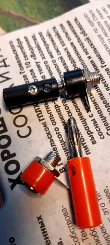 Доставка в Москву Почтой России на 36-й день в объединенном с другими заказами пакете. Трек отслеживался. Бананы простенькие, на некоторых папах пружинки болтаются, контакт может быть не надежным. Думаю, надо эти пружинки к основанию припаять капелькой припоя. В гнезда входят плотно, не выскочат.