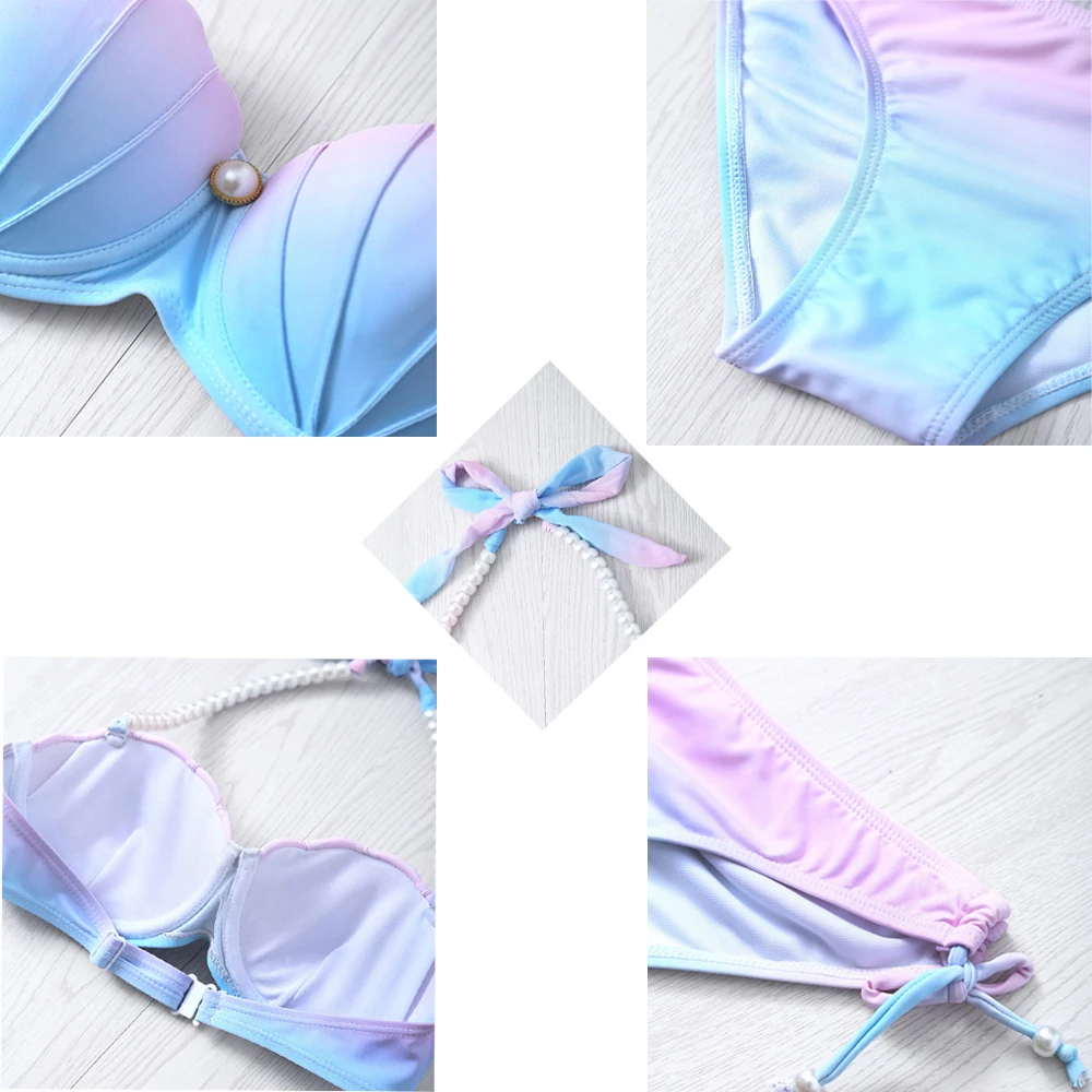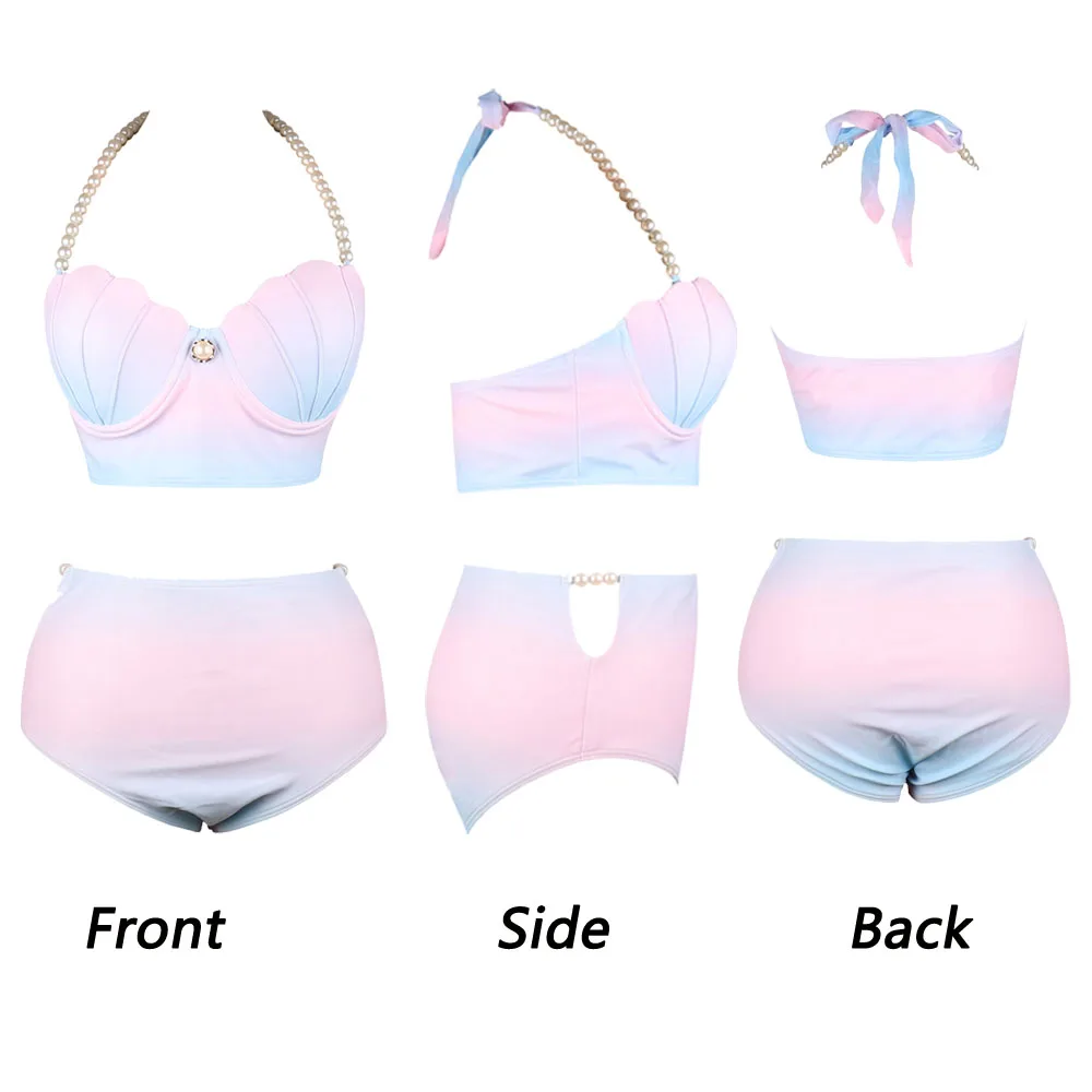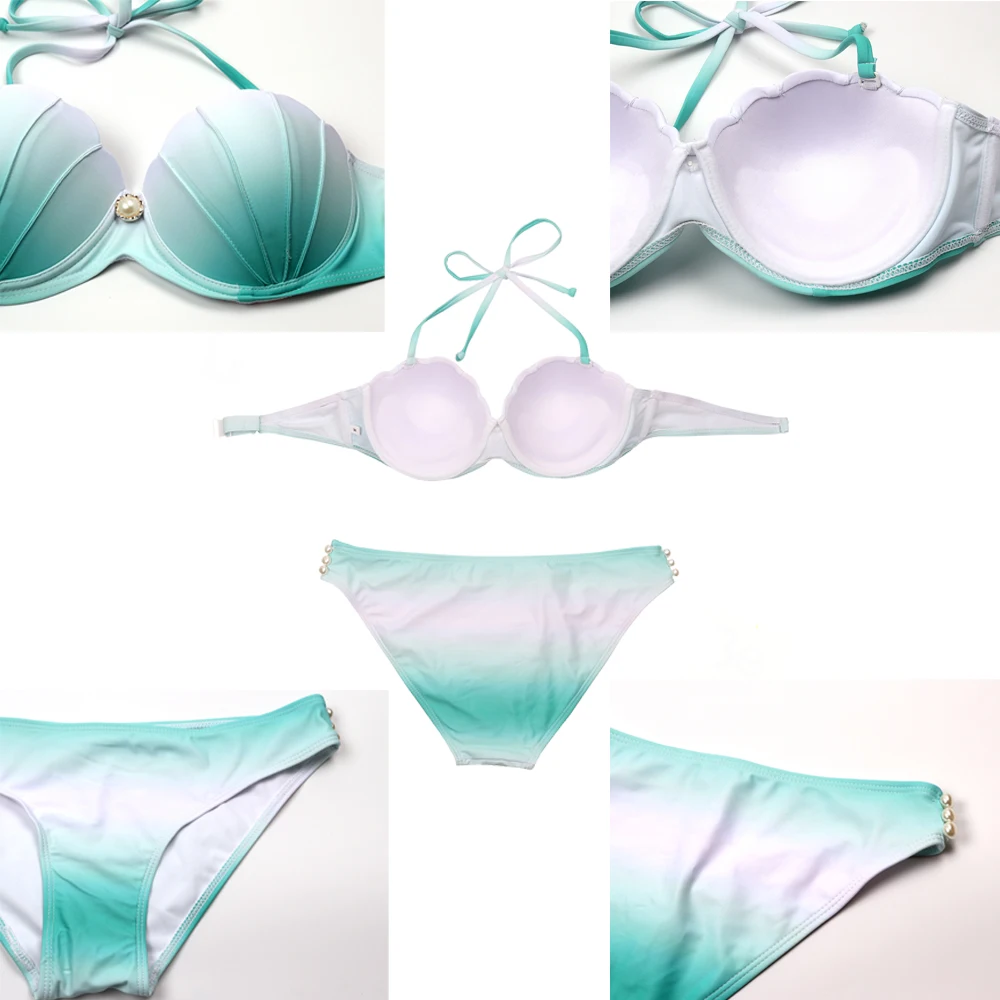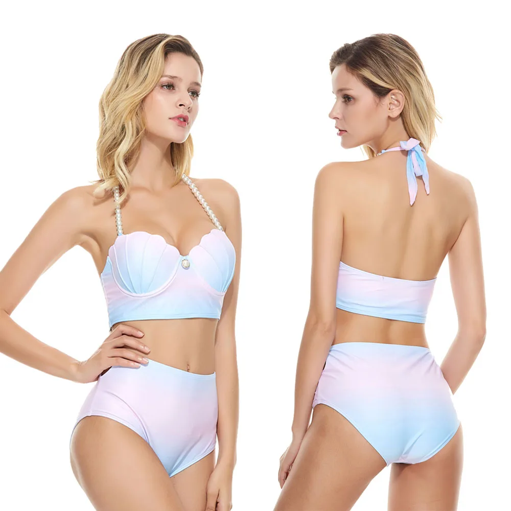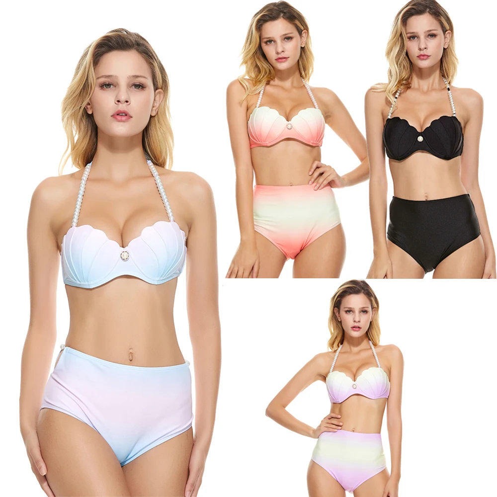 Женский купальник с высокой талией, бюстгальтер с ракушками русалки, женский купальник, Бразильское бикини, набор танкини