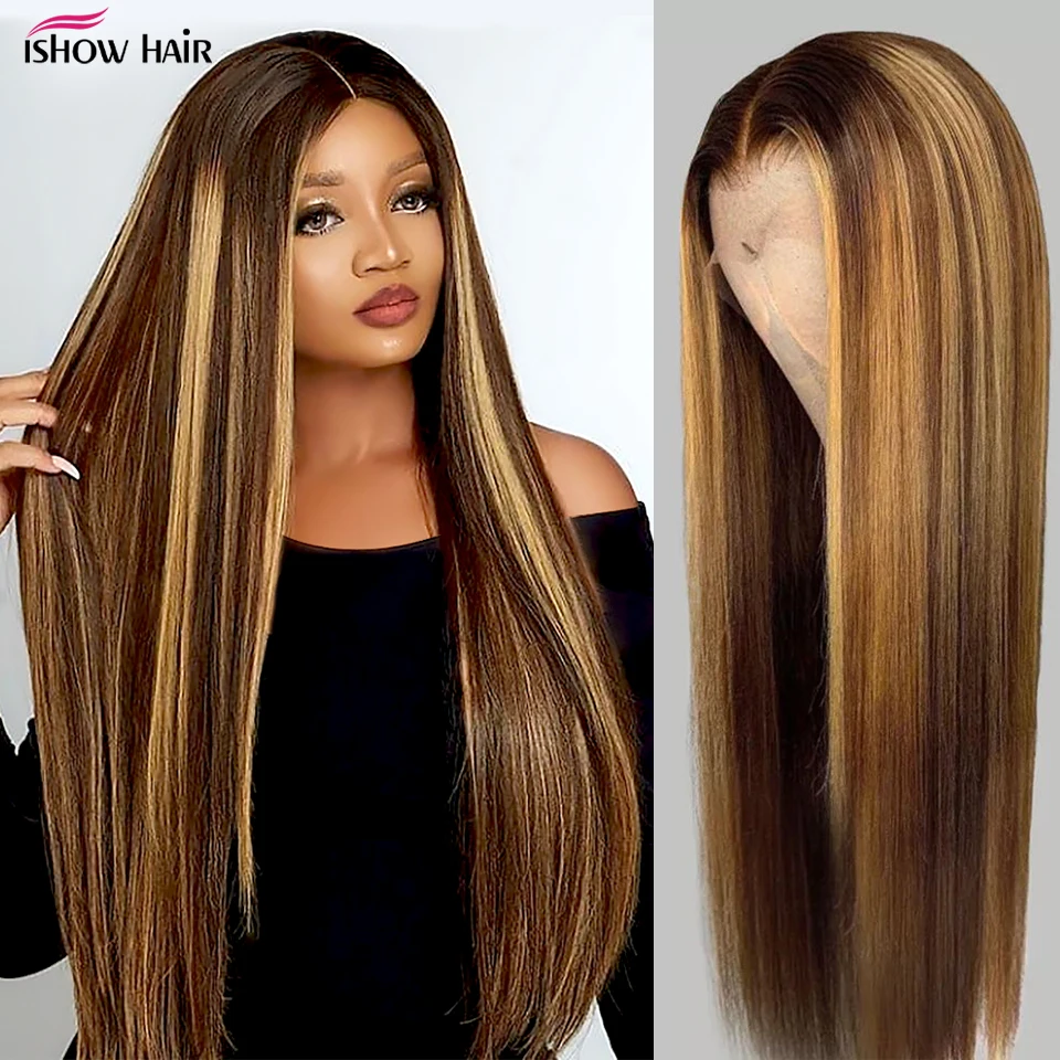 Ishow хайлайтер парик коричневые цветные человеческие волосы парики...