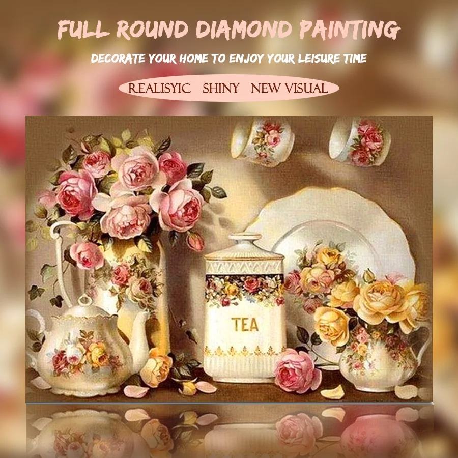 Алмазная вышивка 5D "кухонный цветок", полная круглая Алмазная вышивка, рукоделие, стразы, мозаика для рукоделия