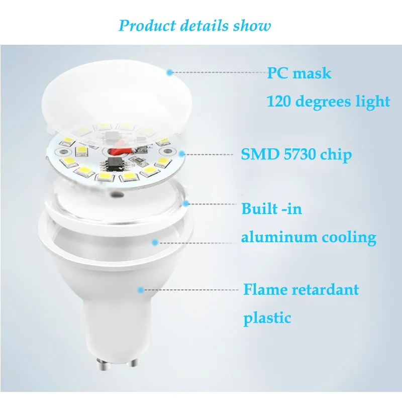 10 шт. светодиодные лампы Mr16 DC 12V 3W 5W Gu10 GU5.3 220V прожекторы SMD 5730 лампы с регулируемой яркостью для домашнего освещения белый ПК + алюминиевый настоящий ватт