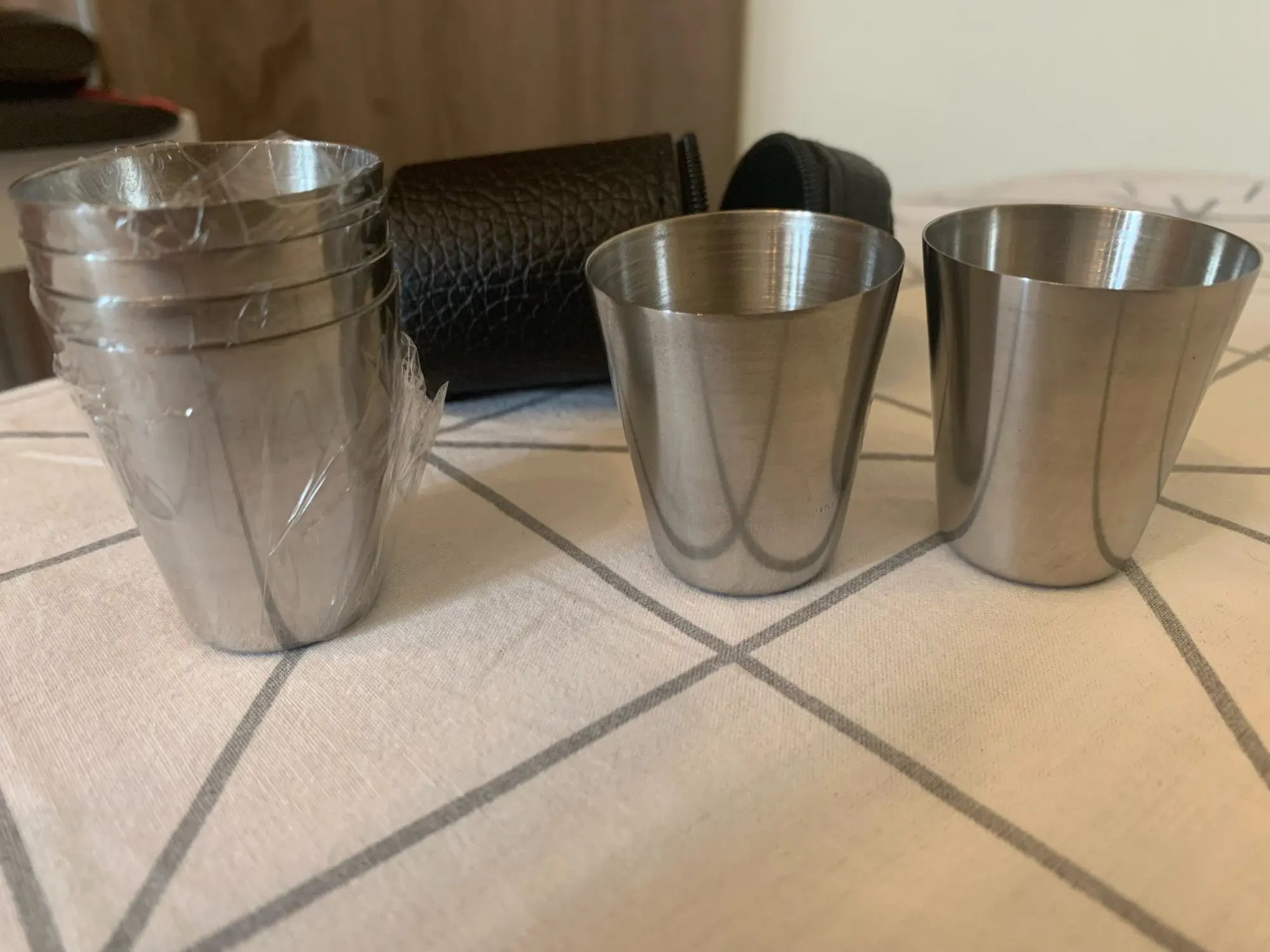 Стопки качественные, упакованы в пакетик, далее в чехол, количество стопок 6 штук. Замок на чехле работает, все норм. Однозначно, стоят своих денег. Я доволен. Для пикников идеальные Доставка и отправка быстрая, попали в сборную посылку.