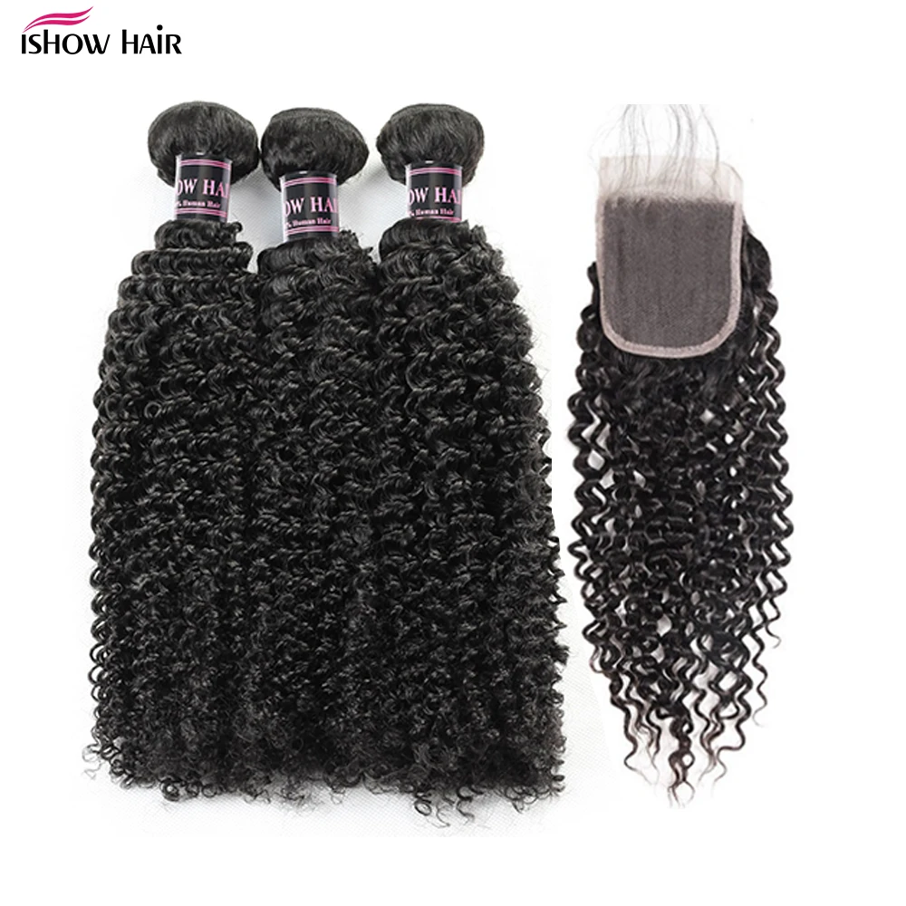 Курчавые Волнистые Волосы Ishow, 3 пучка с закрытыми волосами