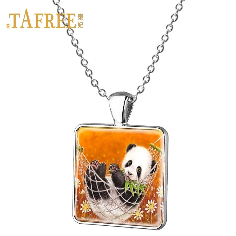 TAFREE ожерелье с изображением кабошона из мультфильма, цепочка с рисунком панды, колье с длинной подвеской, ожерелье для унисекс, подарочное ювелирное изделие E98 Изображения продуктов:
