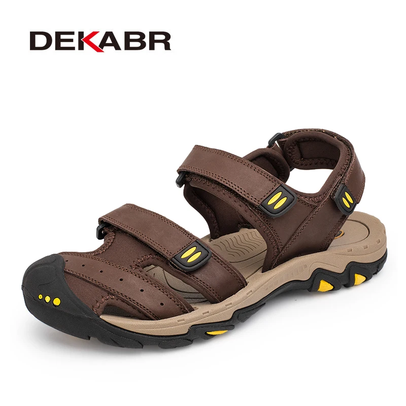 Мужские сандалии из воловьей кожи DEKABR, модная повседневная обувь цвета хаки, нескользящая пляжная обувь с резиновой подошвой, большие размеры 38-47, лето 2019