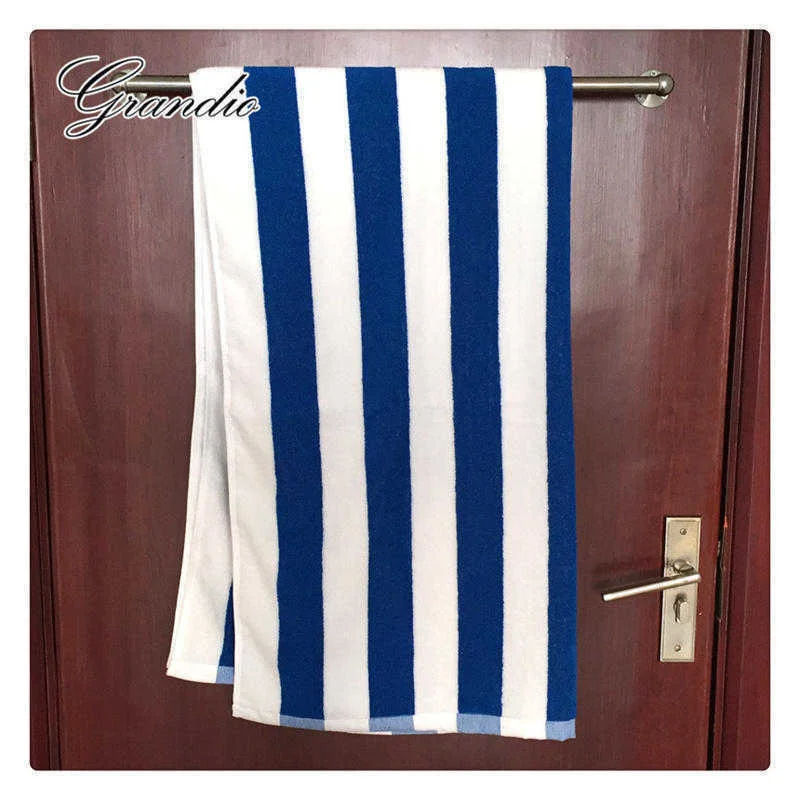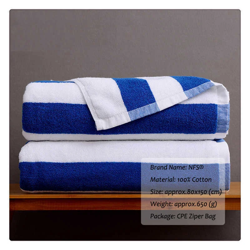 Пляжное полотенце 80 х150 см, 100% хлопок, в синюю и белую полоску, роскошное тяжелое толстое махровое, впитывающее, для отеля, ванной комнаты, для взрослых