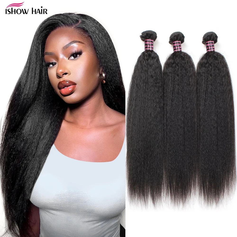 Ishow бразильские кудрявые прямые волосы, пряди Yaki прямые волосы, пряди Yaki человеческие волосы для наращивания 134 шт не Реми