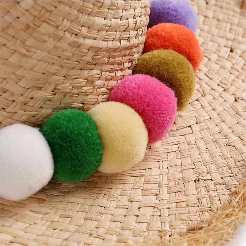 Новая разноцветная соломенная шляпа ручной работы с помпонами и соломенным козырьком для женщин и детей, складная летняя Панама, пляжная шляпа с большими полями для девочек