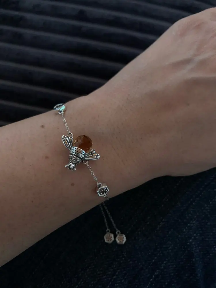 Браслет-цепочка женский из серебра 100% пробы с большим камнем и кристаллом