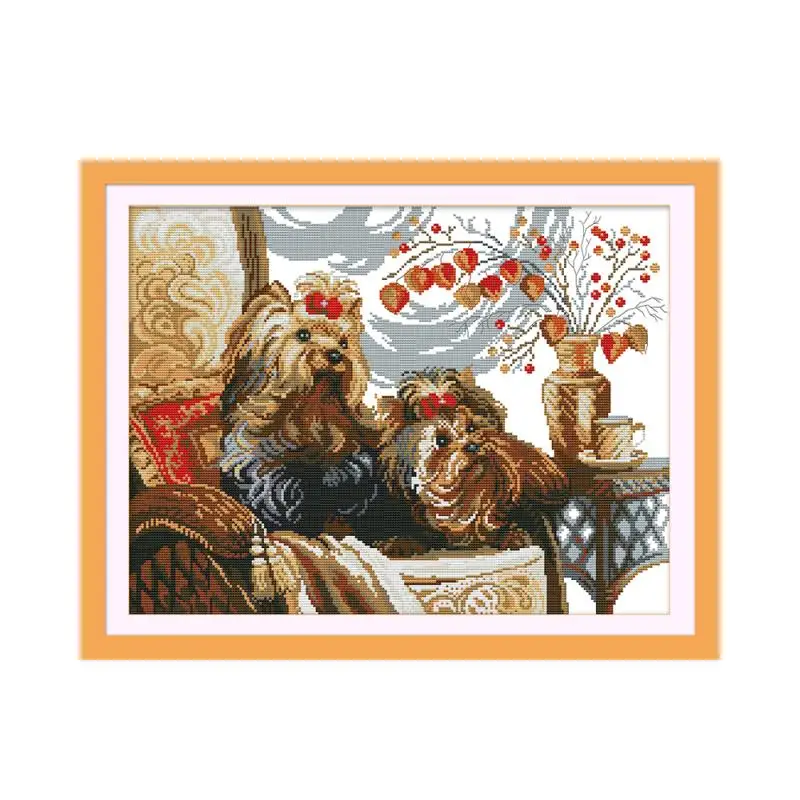 Картины для вышивки крестиком, 1114 шт., с изображением двух щенков