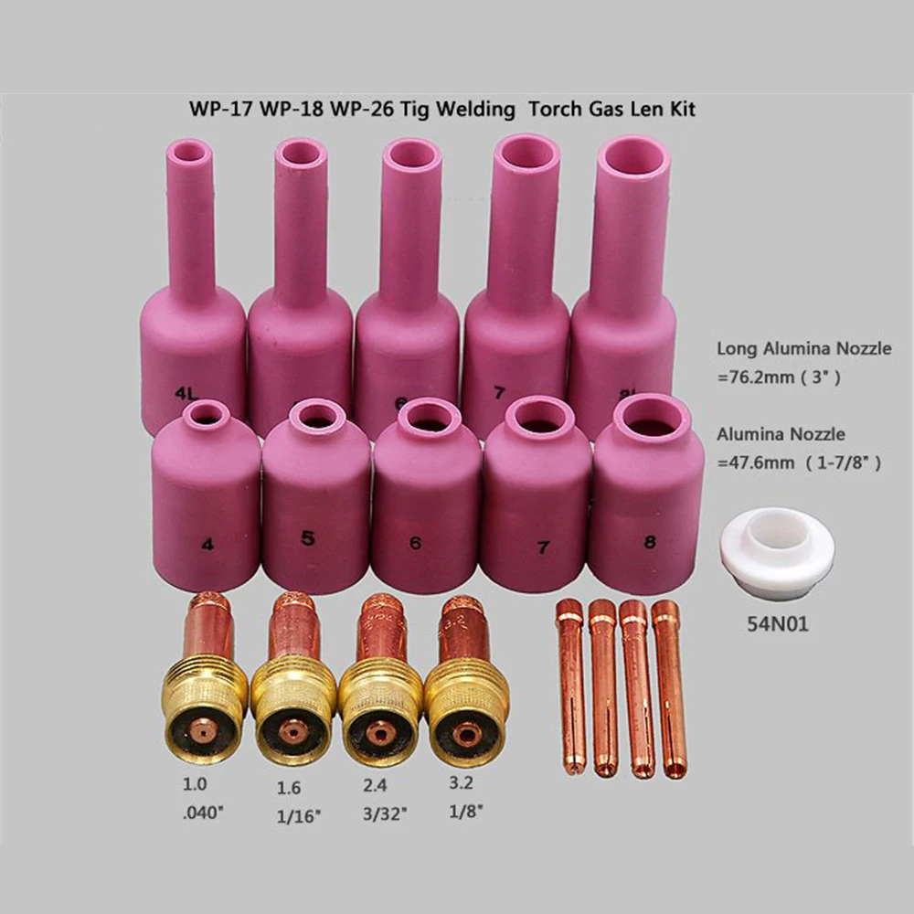 Набор из 19 предметов TIG с длинными газовыми линзами и длинной глиноземной чашкой, подходит для TIG сварофонарь SR WP 17 18 26 Series