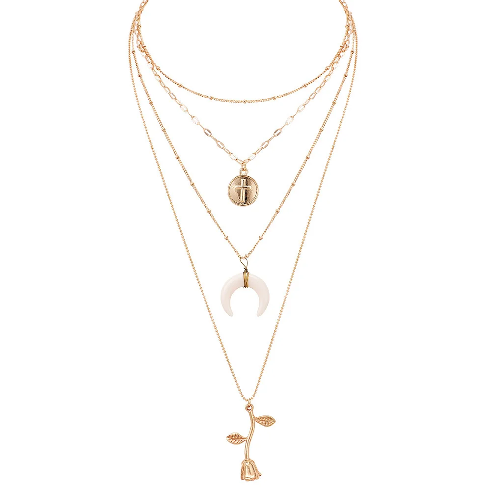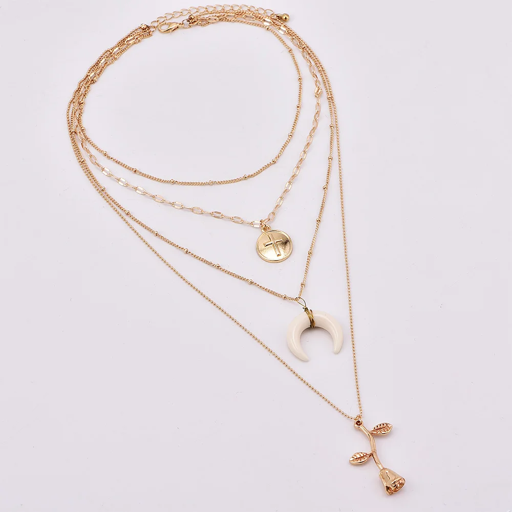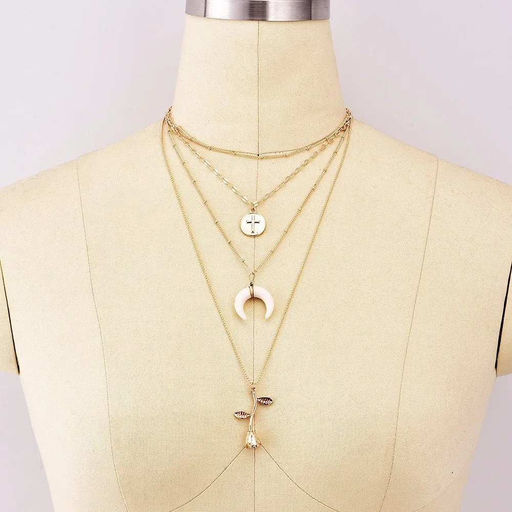 Новинка 2018, модные ювелирные изделия, подвеска в виде Луны, Креста, розы, колье каскадом, лучший подарок для женщин, эффектное ожерелье Exo