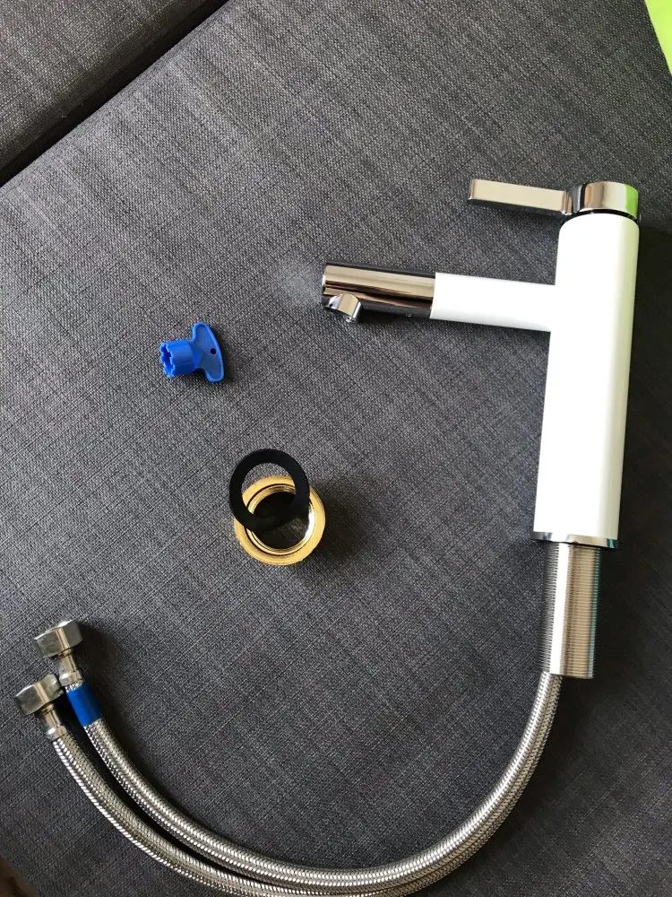 аккуратно надо быть при монтаже. белое царапается на раз. все работает. плавно и мягко. все упаковано аккуратно. в комплекте шланги. приехало за 4 дня курьером