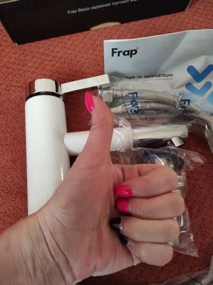 Кран покупался на распродаже за 1800 рублей, что делает покупку крайне выгодной. Ведь в других магазинах цена около 2500 рублей. Бренду Frap есть доверие, так как до этого все краны стояли именно такой фирмы и служили долго. Из плюсов могу отметить красивый дизайн, вращающийся носик и, самое главное, хорошая длина носика - удобно мыть руки! Пишу отзыв сразу после установки: никаких проблем нет, все плотно село и ничего не протекает. Если что-то случится с краном (что вряд ли), то напишу дополнительный отзыв.