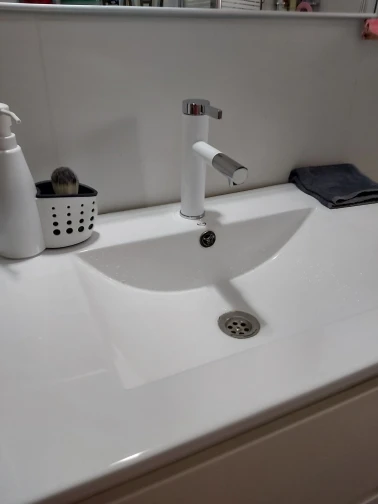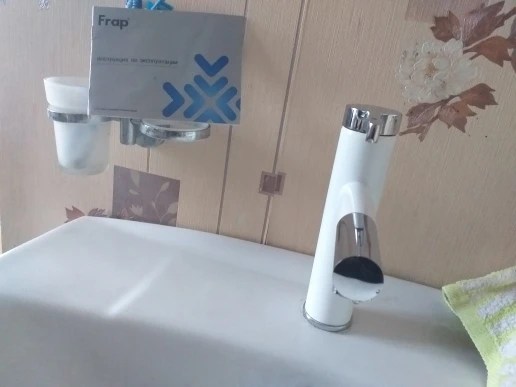 Долго искал замену прежнему Frap F1032, который служил верой и правдой в очень непростых условиях). Текущая модель привлекла в первую очередь хорошей длиной/высотой излива и, собственно, ценой. По дизайну были сомнения, но зря: внешний вид всех привёл в восторг, на самом деле выглядит превосходно! К минусам отнёс бы вращающийся носик: нам он не нужен от слова совсем, но конструкция при этом несёт дополнительные стыки, которые, как показывает практика, очень любят собирать осадок от воды (она у нас довольно жёсткая). Покрытие, надеюсь, не хуже, чем у прошлой модели, так что особо пока не переживаю. К тому же на белой эмали разводы почти не видны. Сам кран приятно тяжёлый, прижимается к раковине одной гайкой (в моем случае идиотская конструкция раковины не даёт нормального доступа для разводного ключа, так что пришлось заворачивать сам кран). Подводка и трубки тонкие, но вместе с аэратором дают неплохую экономию воды, сохраняя при этом хорошую струю. В целом рекомендую товар и продавца!