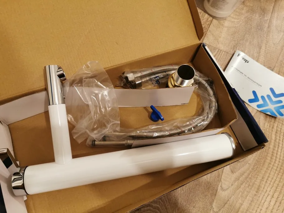 Кран оказался с подковыркой, протекал. Продавец на связь вышел оперативно, но включил режим "открути, посмотри, фото пришли..." простого видео на котором видно, что вода явно травится и явно не в месте подсоединения гибкого шланга (внутри корпуса на внутреннем соединении между картриджем и удлинителем) ему показалось мало. В моём случае оказалось быстрее разобраться с явным инженерным просчётом и "допилить изделие напильником после сборки..." самому, но не факт что все так смогут. Доставка до СПб СДЭКом, который уже не в первый раз вызывает недоумение тем, что 1-х заказ подолгу висит на транзитных складах, 2-х у курьерской службы есть проблемы с отзвоном и пунктуальностью.