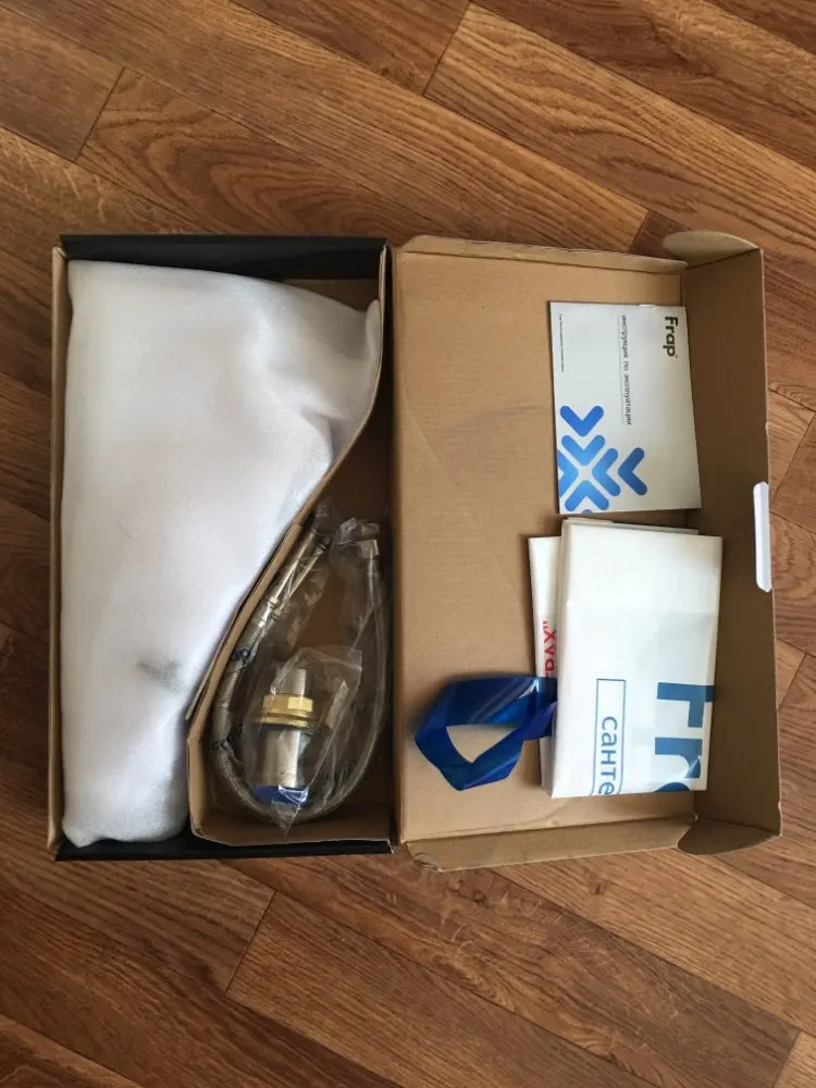 Товар доставили до Свердловской области за 7 дней до квартиры курьерской службой СДек, это очень быстро. Упаковано все в заводскую коробку, сам смеситель отдельно упакован в текстильный мешочек и пористый полиэтилен. В комплекте также два шланга для подключения небольшой длины, втулка для крепления, инструкция на русском языке и пакет. Выглядит довольно стильно и локонично. Покупкой доволен, с продавцом не общался. Брал за 2293 руб. После установки дополню отзыв по работе смесителя.