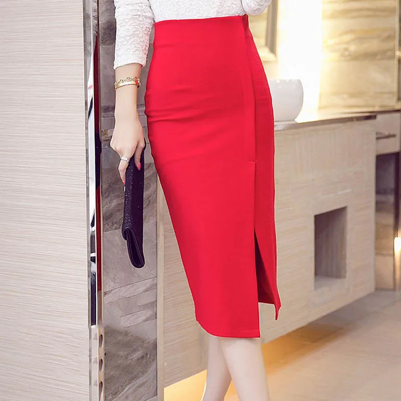 Юбка-карандаш Женская, с высокой талией, облегающая, большого размера, офисная, красная, черная, 3XL, 4XL, 5XL