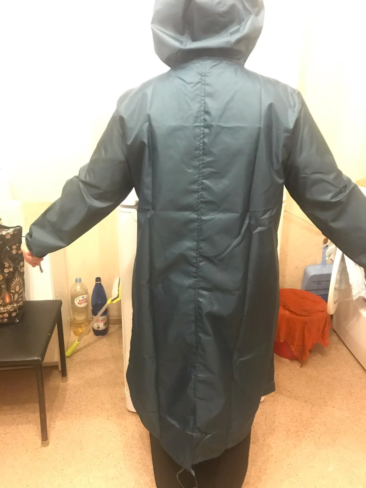 Дождевик пришел очень быстро, вместе с другим товаром. И размер, и рост, всё подошло на мой русский размер 46-48, можно надевать на куртку. Только вызывает опасение, что плащевка будет промокать. Всё равно 5 звезд за сервис и удобство.