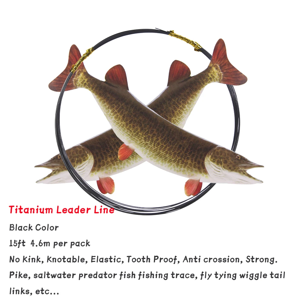 Wifreo 15 футов4,6 м, титановый поводок Без перегиба, поводок для морской рыбалки на щуку, поводок для завязывания нахлыстовой лески