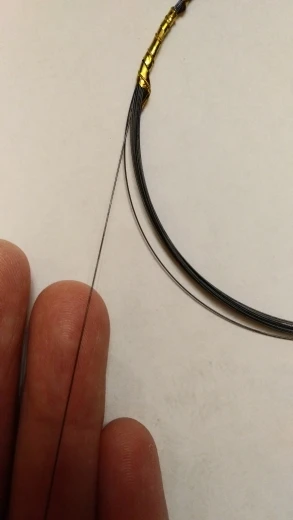 очень чувствительная к перегибам поэтому советую из обжимных сделать и также петлю для вертлюжка и застёжки. и советую скручивать в местах обжима ка скрутку на пару витков не больше.