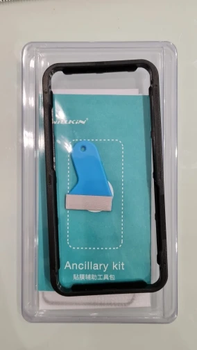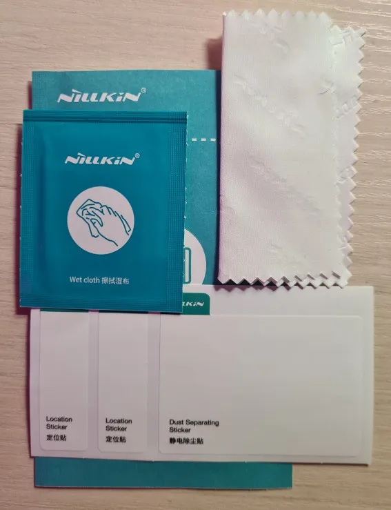 Дошло до Сургута (ХМАО) за 2 недели - невероятно быстро! Уже по упаковке чувствуешь, что держишь качественный продукт. В комплекте все необходимое для успешного и качественного наклеивания: влажная тряпочка, электростатическая пленка для пыли и скребок с мягким краем. Ещё какая-то рамка. Подозреваю для фиксации телефона на время процедуры