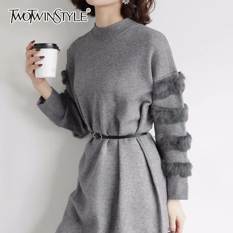Женский вязаный пуловер TWOTWINSTYLE, свободный свитер с длинными рукавами, толстый теплый джемпер большого размера на зиму
