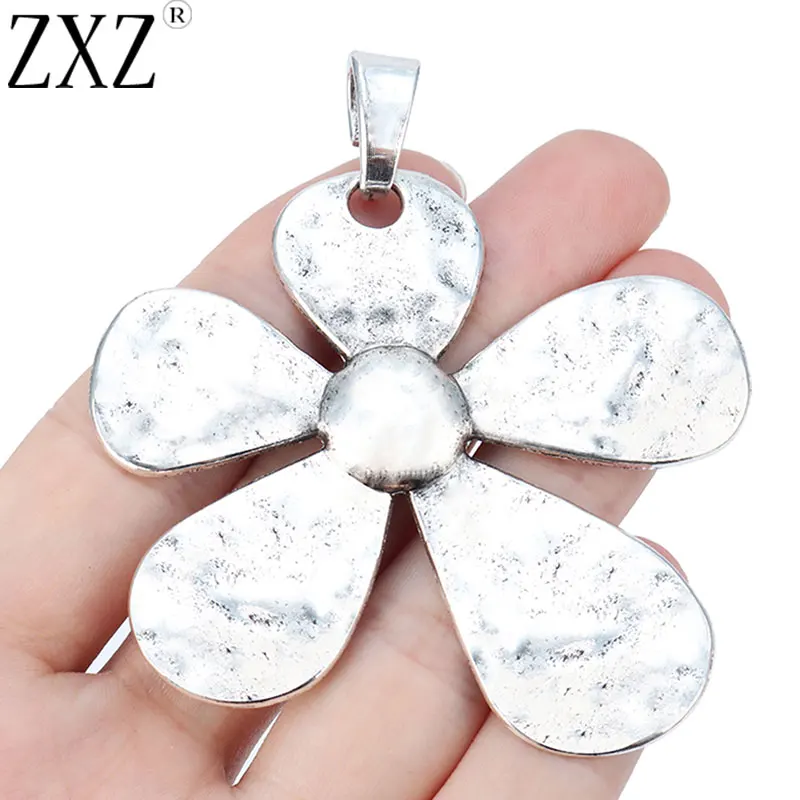 ZXZ 2 шт. тибетские серебряные крупные кулоны в виде цветов, подвески для ожерелья, ювелирных изделий, фурнитура 68x60 мм
