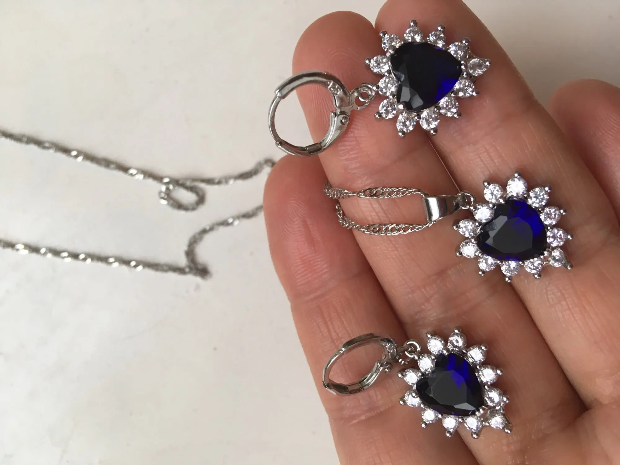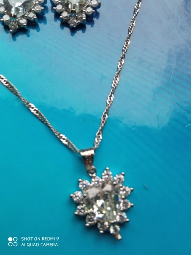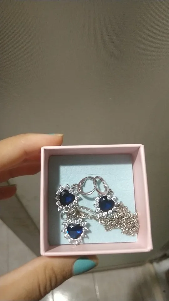 Прекрасный комплект! Подвески на цепочке и серёжках одинакового размера, циркон отлично блестит и переливается, все элементы на месте. Фото немного искажает цвет - живьём это цвет аквамарин. Продавец отправил заказ в воздушном пакете - ничего не помялось и не сломалось, всё пришло в идеальном состоянии. Заказ отслеживался на всём пути следования, дошёл за 3 недели.