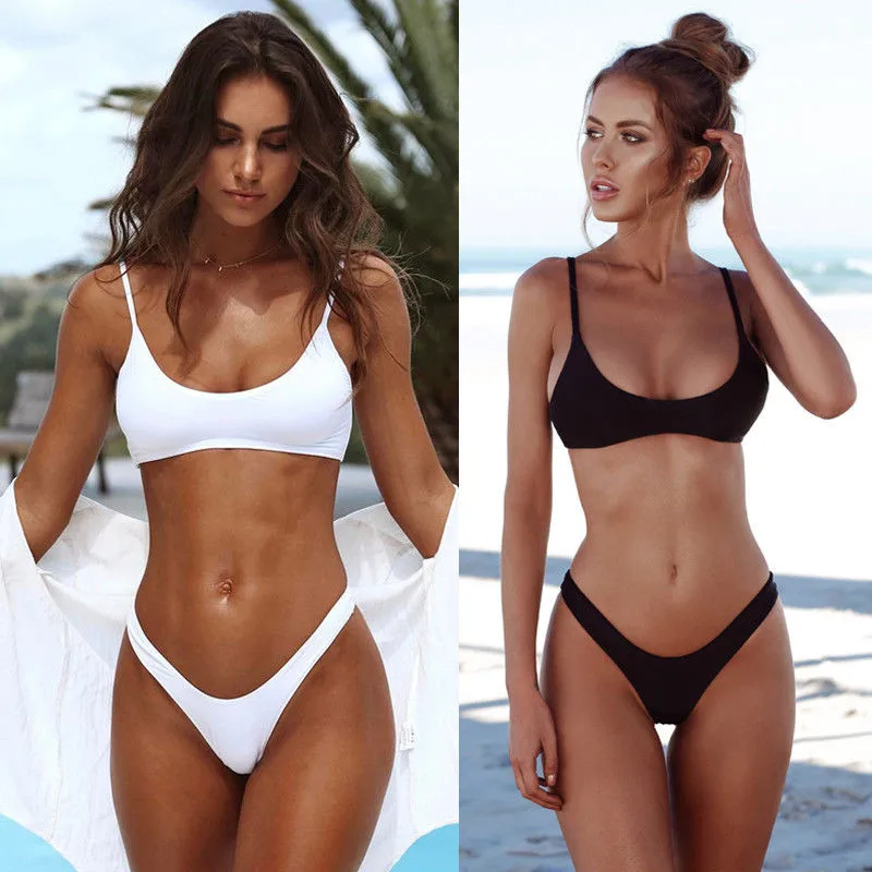 2018 Женский комплект бикини, бразильский сексуальный купальник с пуш-ап и подкладкой, с низкой талией, новейший купальник Монокини, женский белый/черный купальный костюм!