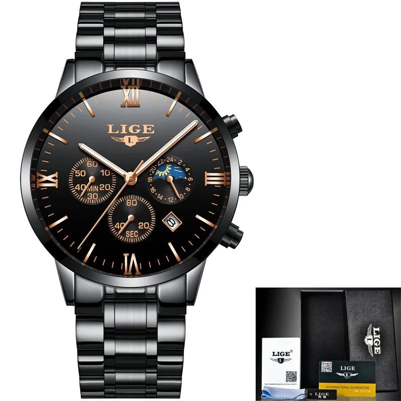 ? Идеальный дизайн: все маленькие циферблаты работают, IP Черный Позолоченный чехол и сетчатый ремень из нержавеющей стали никогда не выцветают (отправлю инструменты DIY для регулировки размера ремешка)
