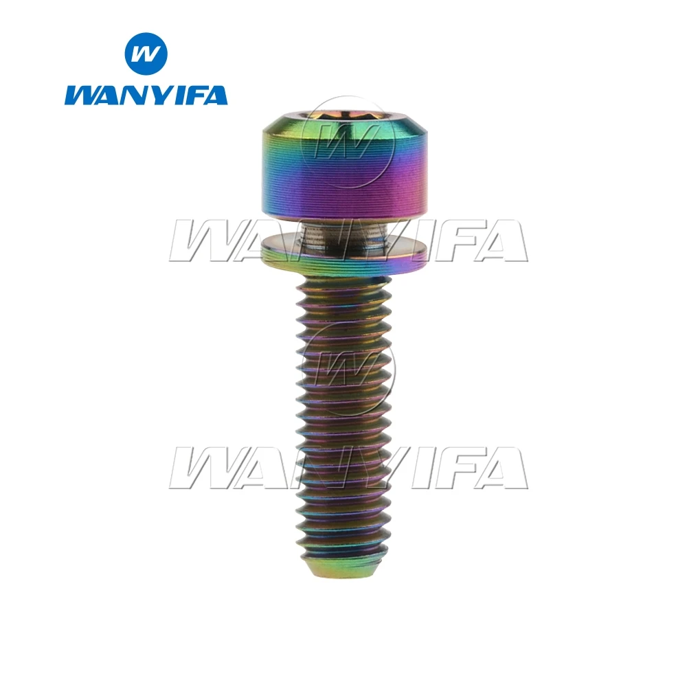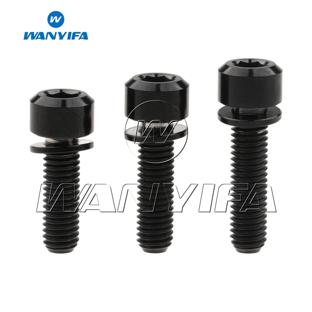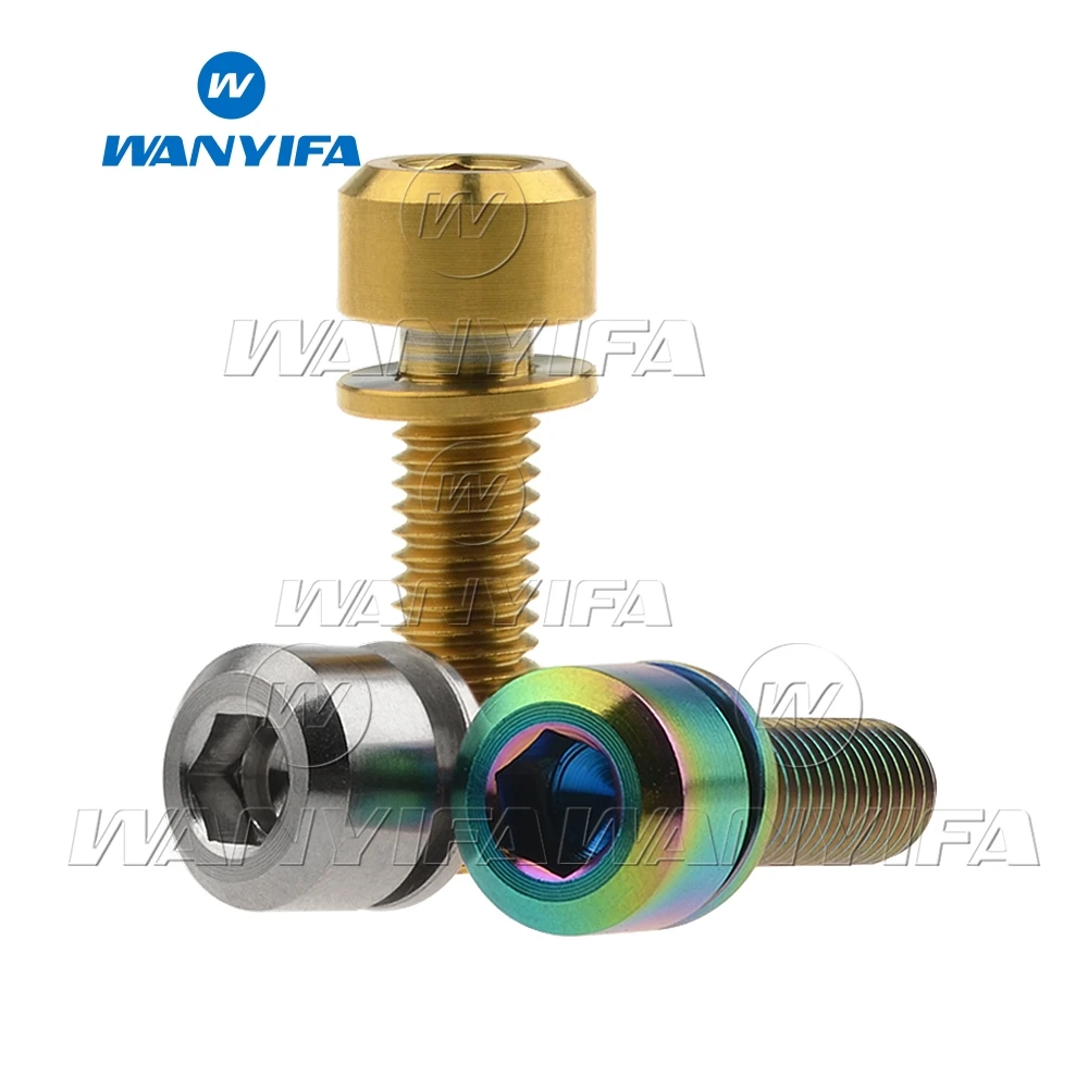 Диаметр головки: 8,4 мм толщина шайбы: 1 мм Спецификация: M5x16/18/20 мм Используйте шестигранный ключ 4 ммШаг 0,8 мм. Аэрокосмический титан класса 5 Цена указана только за 1 болт