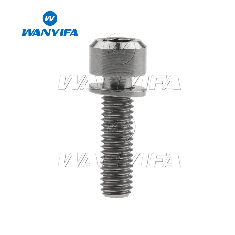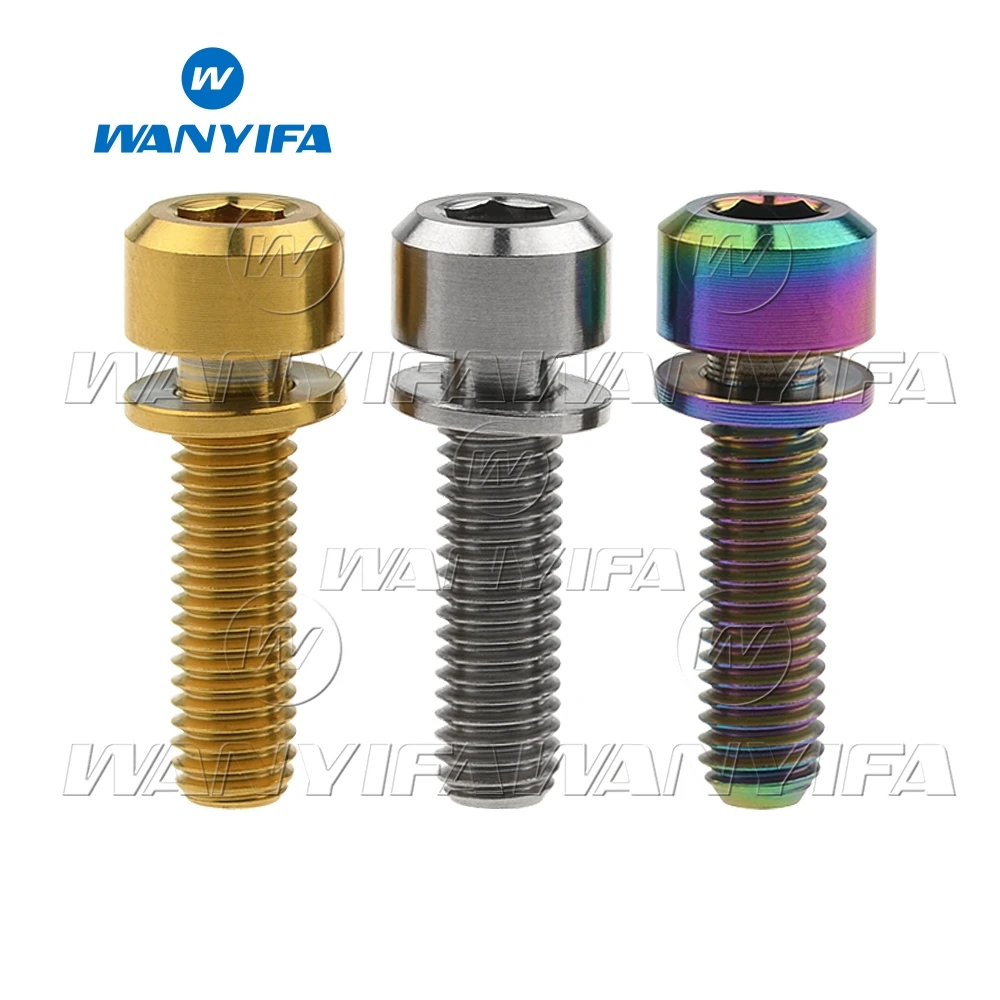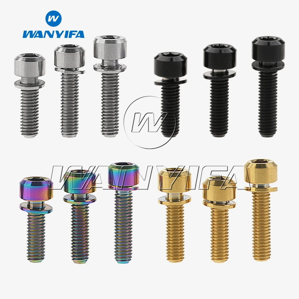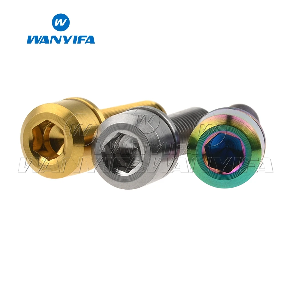 Диаметр головки: 8,4 мм толщина шайбы: 1 мм Спецификация: M5x16/18/20 мм Используйте шестигранный ключ 4 ммШаг 0,8 мм. Аэрокосмический титан класса 5 Цена указана только за 1 болт