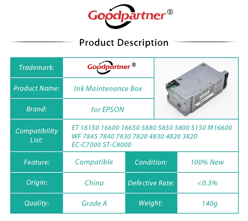 1X C9345 C12C934591 контейнер для обслуживания чернил для EPSON ET 16150 16600 16650 5880 5850 5800 5150 WF 7845 7840 7830 7820 4830 4820 3820