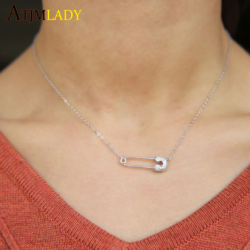 -Стиль товара:Новое уникальное роскошное ожерелье из серебра 925 пробы с крошечным фианитом, ожерелье с булавкой Safetysecurit для женщин, колье, Женские Ювелирные изделия