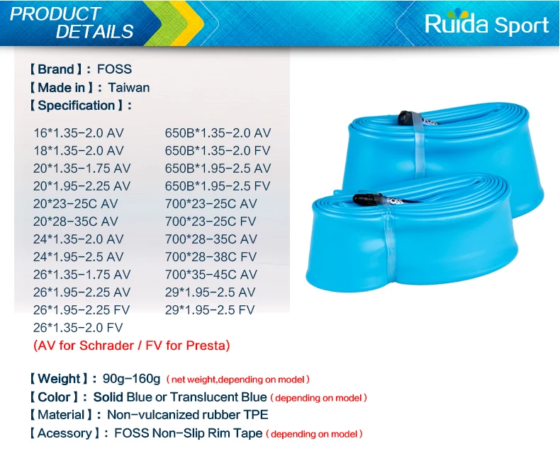 Велосипедная шина FOSS SchraderPresta 162024262727700C MTB, внутренняя трубка, резиновая велосипедная шина для проколов