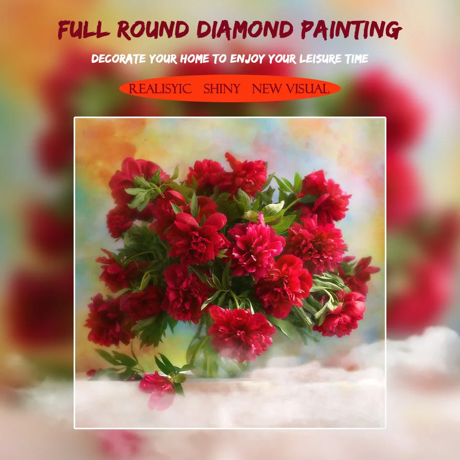 100% Полный 5D Diy Daimond картина "красный пион" 3D алмазов картина круглые стразы Diamant живопись Вышивка Цветы